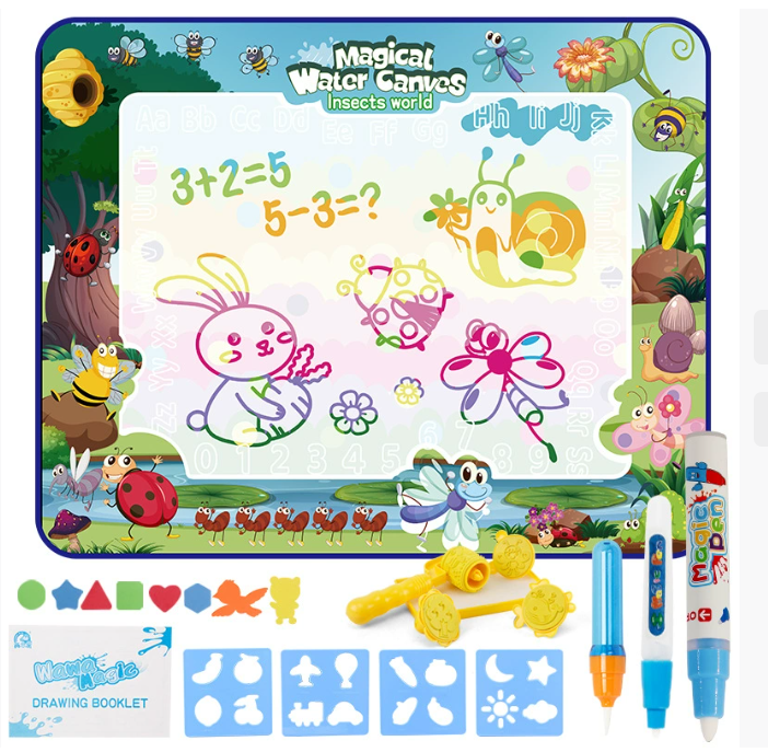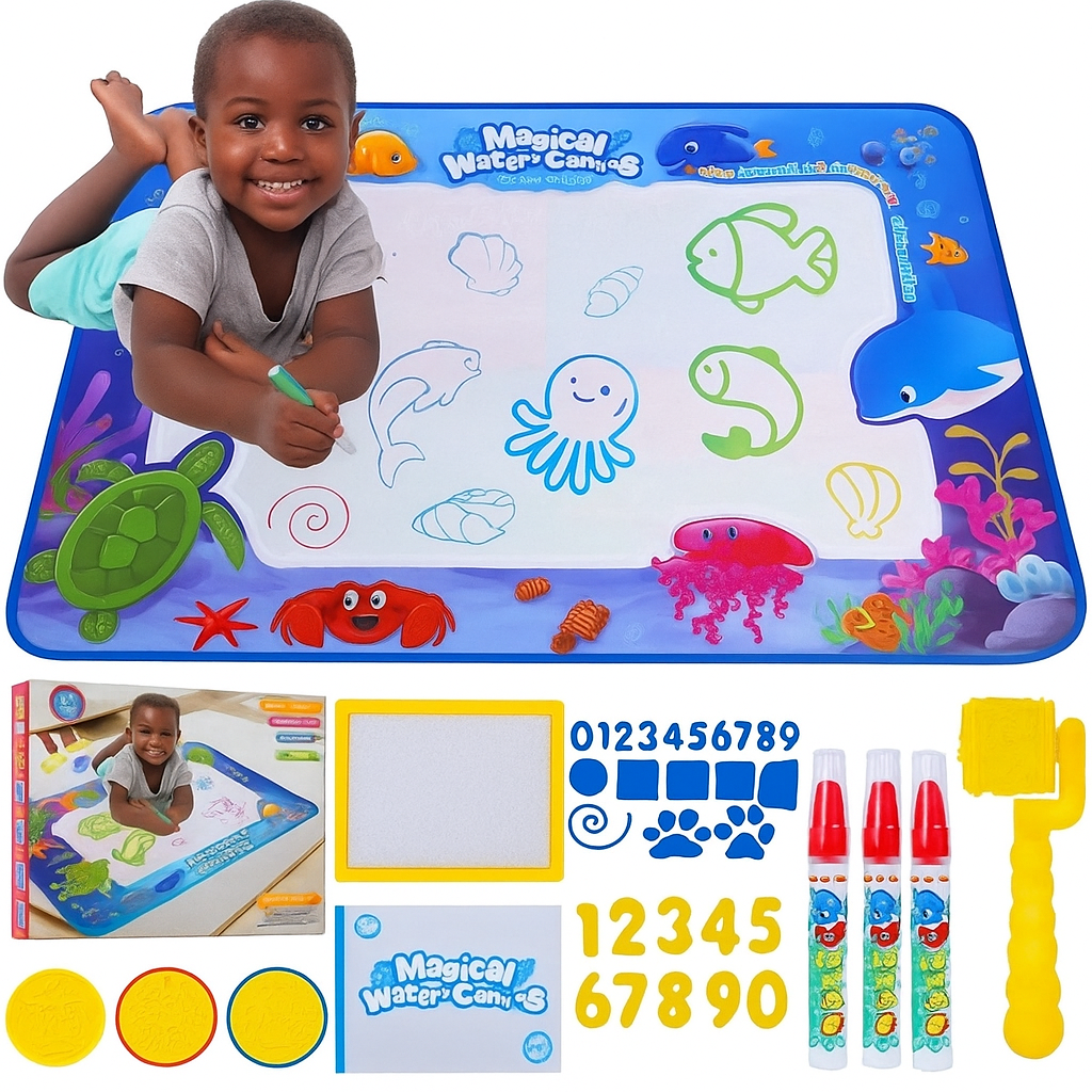 Fini les murs tachés , les crayons cassés et les habitudes pleines de couleurs. Avec ce tapis magique, vos enfants dessinent uniquement à l'eau : zéro dégât et zéro stress . Chaque trait disparaît après quelques minutes, prêt à accueillir une nouvelle création. Les enfants ne se lassent jamais ! Vous gardez une maison propre et ordonnée , tout en laissant vos petits exprimer leur imagination sans limite.